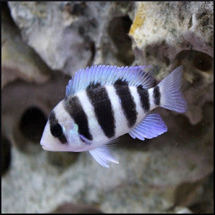 The Frontosa African Cichlid is a fairly typical member of the Cichlidae family. Both sexes are characterized by a large frontal hump which will develop as the fish reaches maturity, or attains a length of around 4 inches. It is known by the scientific name of Cyphotilapia frontosa, but may also be known as Paratilapia frontosa, and Pelmatochromis frontosus. Originating from the deep waters of Lake Tanganyika, Africa, wild-caught specimens are not seen as often as captive-bred specimens in the hobbyist's aquarium. In their native Africa, Frontosa African Cichlids are considered a delicacy on the table.Although territorial, the Frontosa African Cichlid is generally not aggressive, but rather gentle and tolerant. It does well in a tank with plenty of rocks and caves for hiding and a sandy bottom. Plants are incidental but may be helpful for other tank mates.