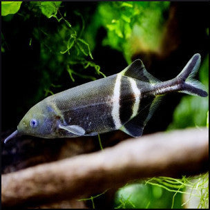 The Elephant Nose is an interesting fish that originates from the Niger River and its tributaries in Western Africa. Its body is mostly black and is irregularly shaped with a long narrow tail and what looks to be its nose however this is actually an extension of the fish's mouth. The Elephant nose uses its trunk-like extension to forage for food, communicate, move through the water and self defense. It possesses a weak electrical organ at the caudal peduncles which is used to locate food.It requires a minimum of a 50 gallon aquarium with good water conditions. It is generally timid and reclusive, preferring a fine-gravel-bottom aquarium with plenty of plants and rocks for hiding places where it can find refuge from the light. To better appreciate this fish, many hobbyists will purchase a "ghost tube," a clear plastic tube that facilitates viewing during the day. Once accustomed to its surroundings, the Elephant Nose can become incredibly tame and trusting to the point of being hand-held. It does well with other, larger species of a peaceful nature, but may be aggressive towards those of similar or smaller size.
