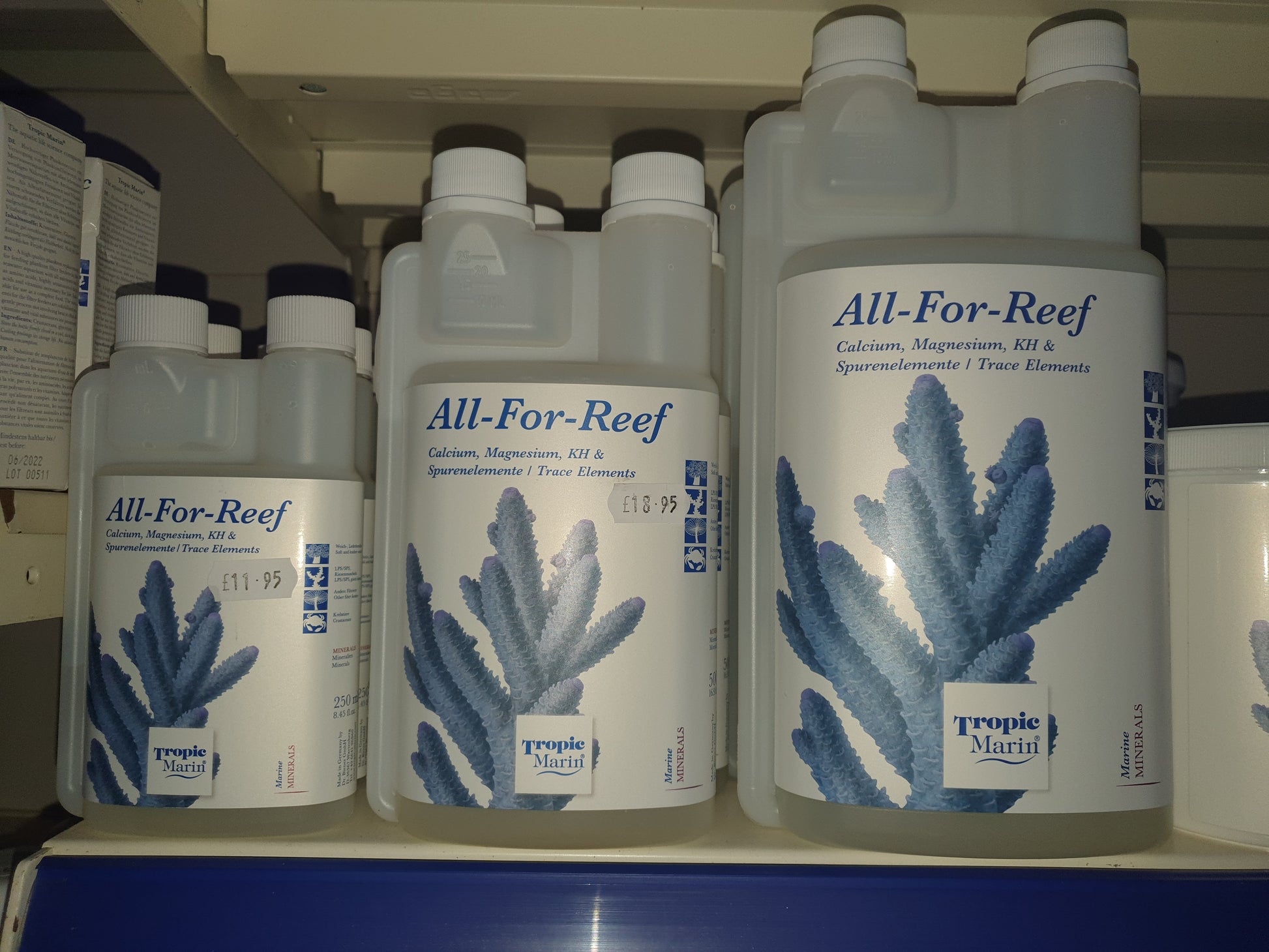 ALL-FOR-REEF is an easy- to-use, highly concentrated solution for the supply of ALL essential minerals and trace elements in new or moderately stocked reef aquariums.